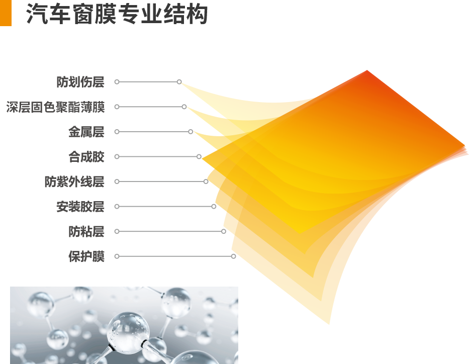 主要起到粘合作用,将多种不同层面黏在一起,形成整体。优秀的太阳膜要求合成胶性质稳定,且材料环保,保证贴膜品质。